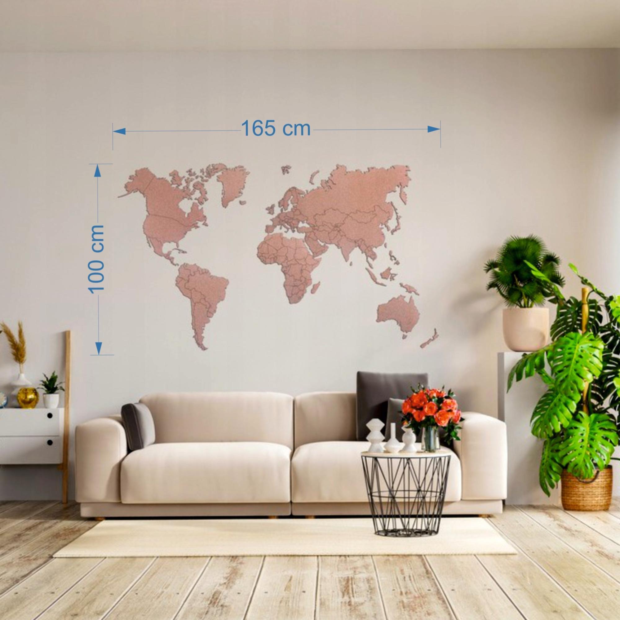 Mapa Świata z korka samoprzylepnego 165x100cm - dekoracja ścienna dla podróżników